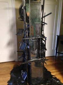 Reflection and transparency are motivating concepts for this installation, and are meant to enact both an internal dialogue and a conversation between viewers. My process began with the entrancing qualities of glass. I created this work in response to an open call for work by the feminist collective, Yeah That’s What She Said. The call was based on “…the feminist tradition of investigating the corporeal…” I struggled with this concept. It is unnatural for me to think of a body without a spirit. Although, many bodies are treated as if they had no spirit. This struggle between thinking of a body with spirit and without spirit, allowed for me to reflect more deeply and resulted in the construction of Veneration and Clairvoyance.